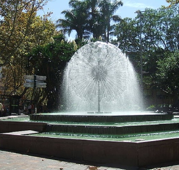 Dandelion fountain is a decorative fountain that mimics the shape of a dandelion flower. It has a cluster of thin rods or blades that radiate outward in a spherical pattern. When water flows through the rods, it creates a cascading effect that resembles dandelion seeds floating in the wind.